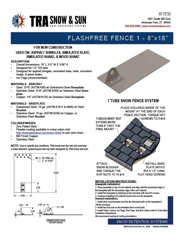 At TRA Snow and Sun we engineer and layout each project free of charge using many factors specific to your roof. We then provide you with the snow retention plan, layout and product details. TRA Snow and Sun representatives will work with you to design the most efficient snow retention system. Fill out our Snow Retention Checklist to get started.