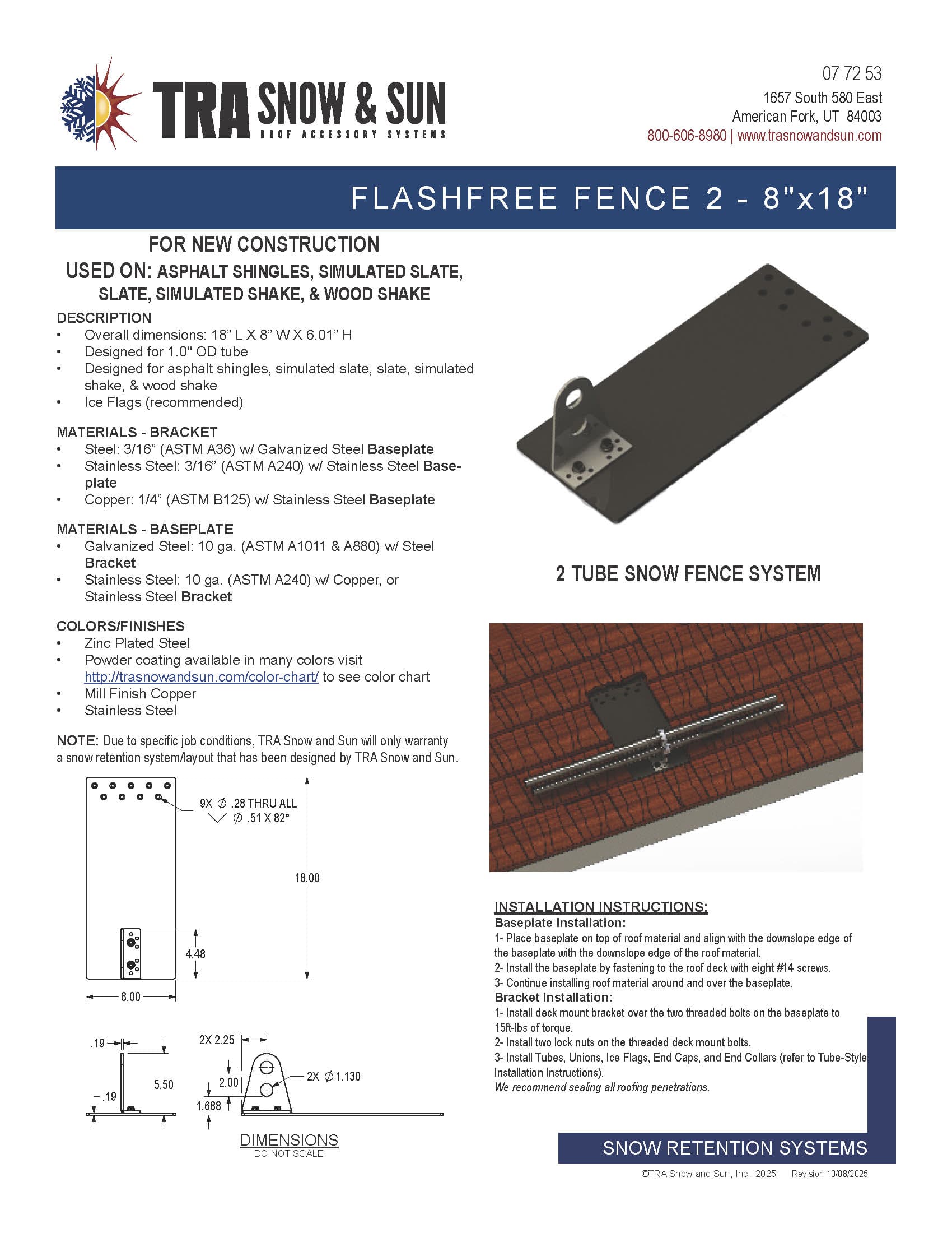At TRA Snow and Sun we engineer and layout each project free of charge using many factors specific to your roof. We then provide you with the snow retention plan, layout and product details. TRA Snow and Sun representatives will work with you to design the most efficient snow retention system. Fill out our Snow Retention Checklist to get started.