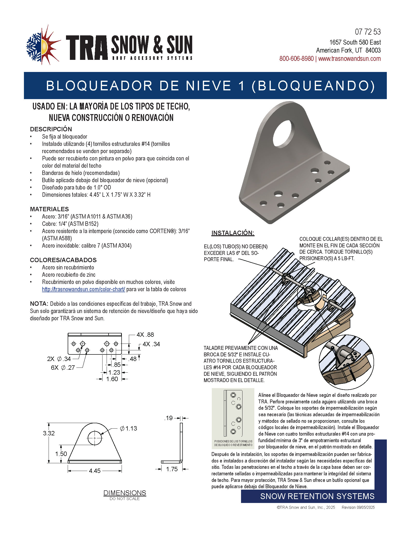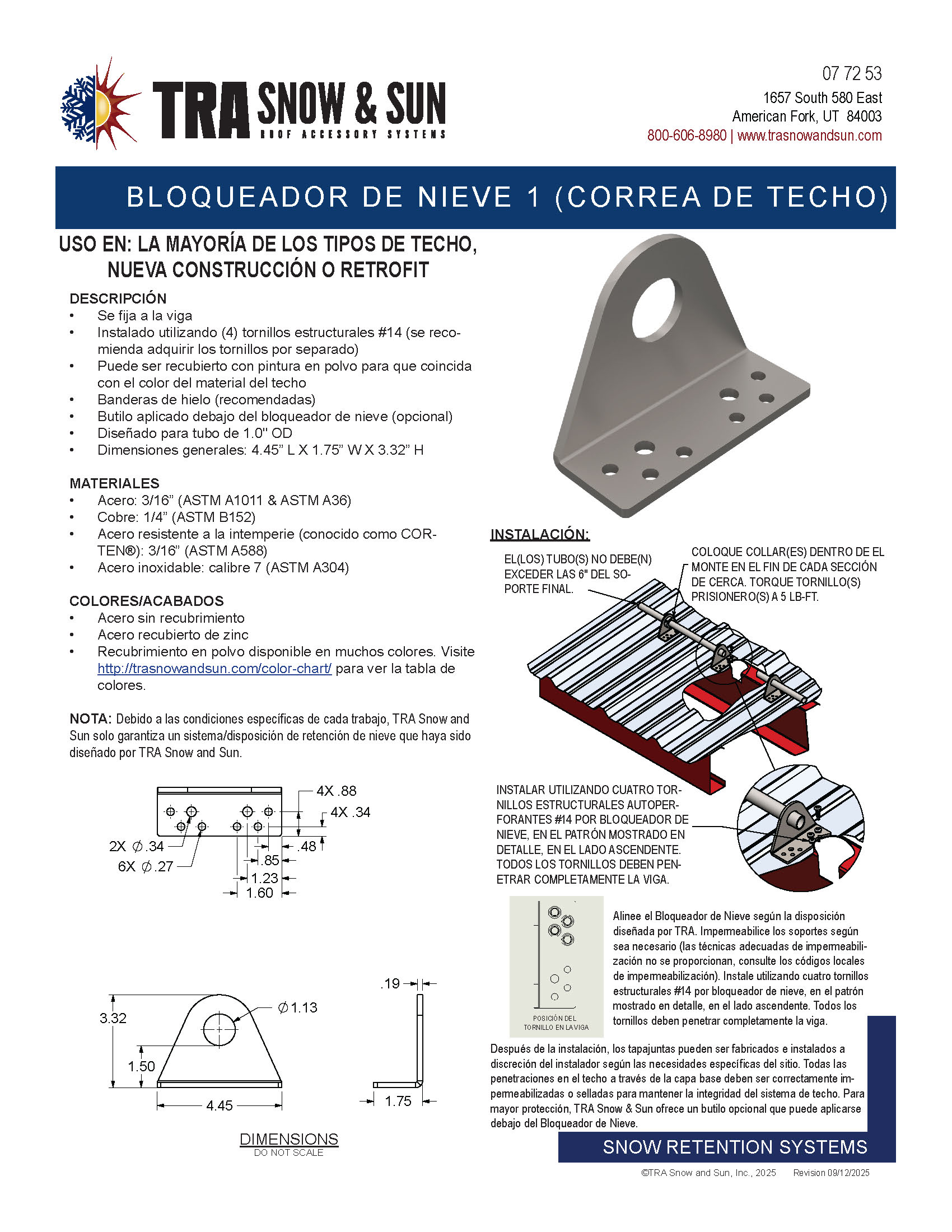 At TRA Snow and Sun we engineer and layout each project free of charge using many factors specific to your roof. We then provide you with the snow retention plan, layout and product details. TRA Snow and Sun representatives will work with you to design the most efficient snow retention system. Fill out our Snow Retention Checklist to get started.