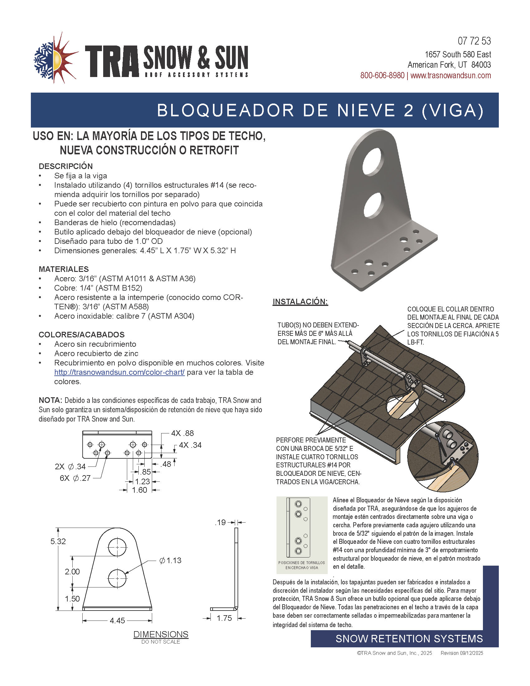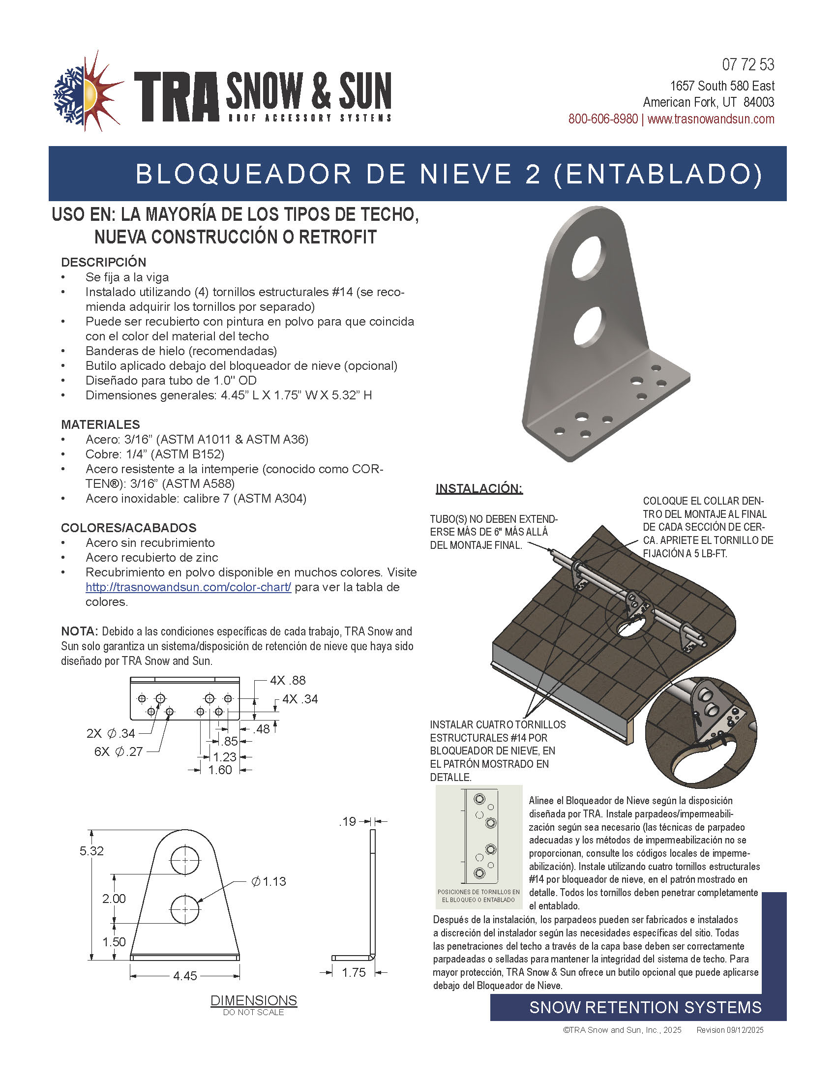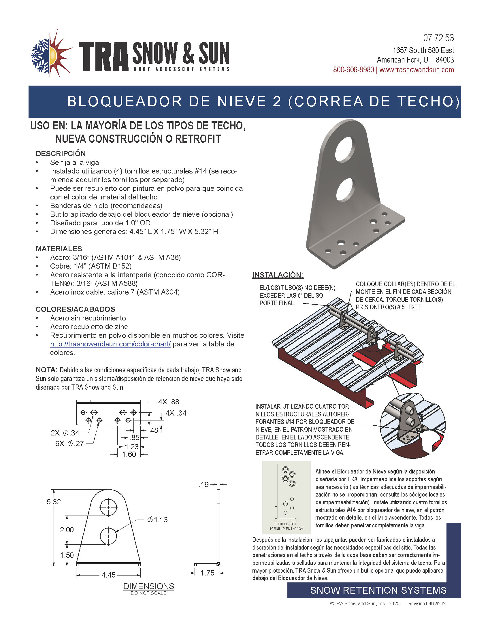 At TRA Snow and Sun we engineer and layout each project free of charge using many factors specific to your roof. We then provide you with the snow retention plan, layout and product details. TRA Snow and Sun representatives will work with you to design the most efficient snow retention system. Fill out our Snow Retention Checklist to get started.